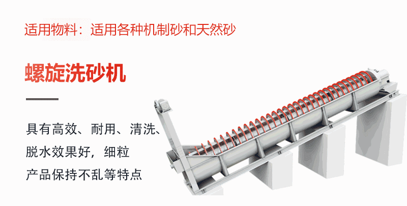 螺旋洗砂機(jī)是借助于固體粒大小不同,比重不同,因而在液體中的沉降速度不同的原理,細(xì)礦粒浮游在水中成溢流出,粗礦粒沉于槽底。由螺旋推向上部排出,來進(jìn)行機(jī)械分級(jí)的一種洗選分級(jí)設(shè)備。